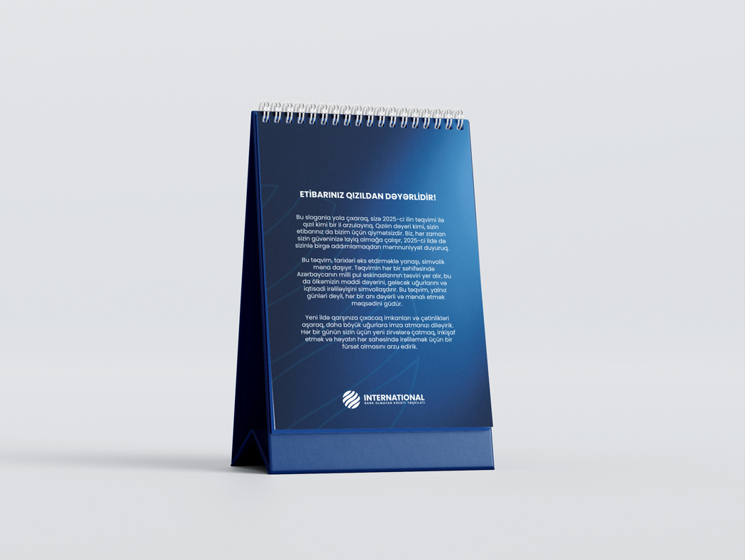 İnternational Bokt kredit təşkilatı üçün tərəfimizdən hazırlanan 2025-ci il təqvim konsept və dizaynı